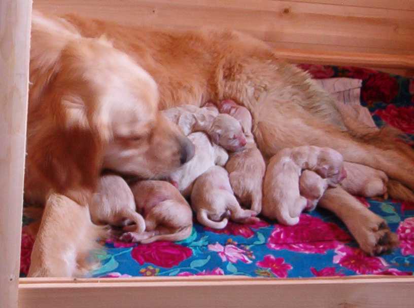 Meine Kinder wurden Heute den 16. September 2003 im Zeitraum von 5.25Uhr bis 9.00Uhr geboren. Alle 9 und ich sind wohlauf. (5Rüden + 4 Hündinnen)